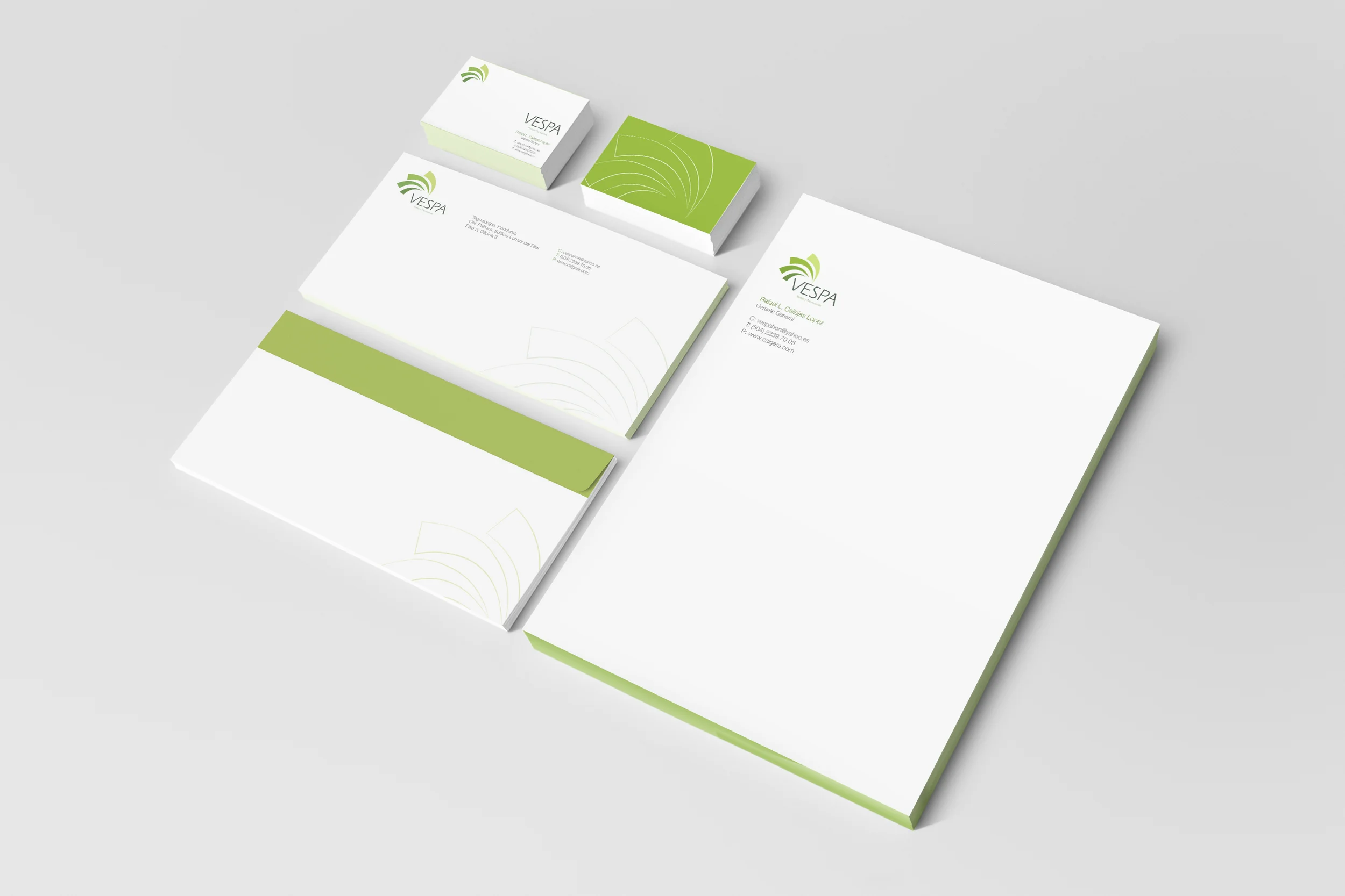This project consisted in actually creating the stationary package for the client. Many different experiments were done in able to create this final product. The client wanted bright colors, choosing the greens due to its' significance. It symbolizes growth, harmony, freshness, and fertility. Green also has a strong emotional correspondence with safety. Dark green is also commonly associated with money.