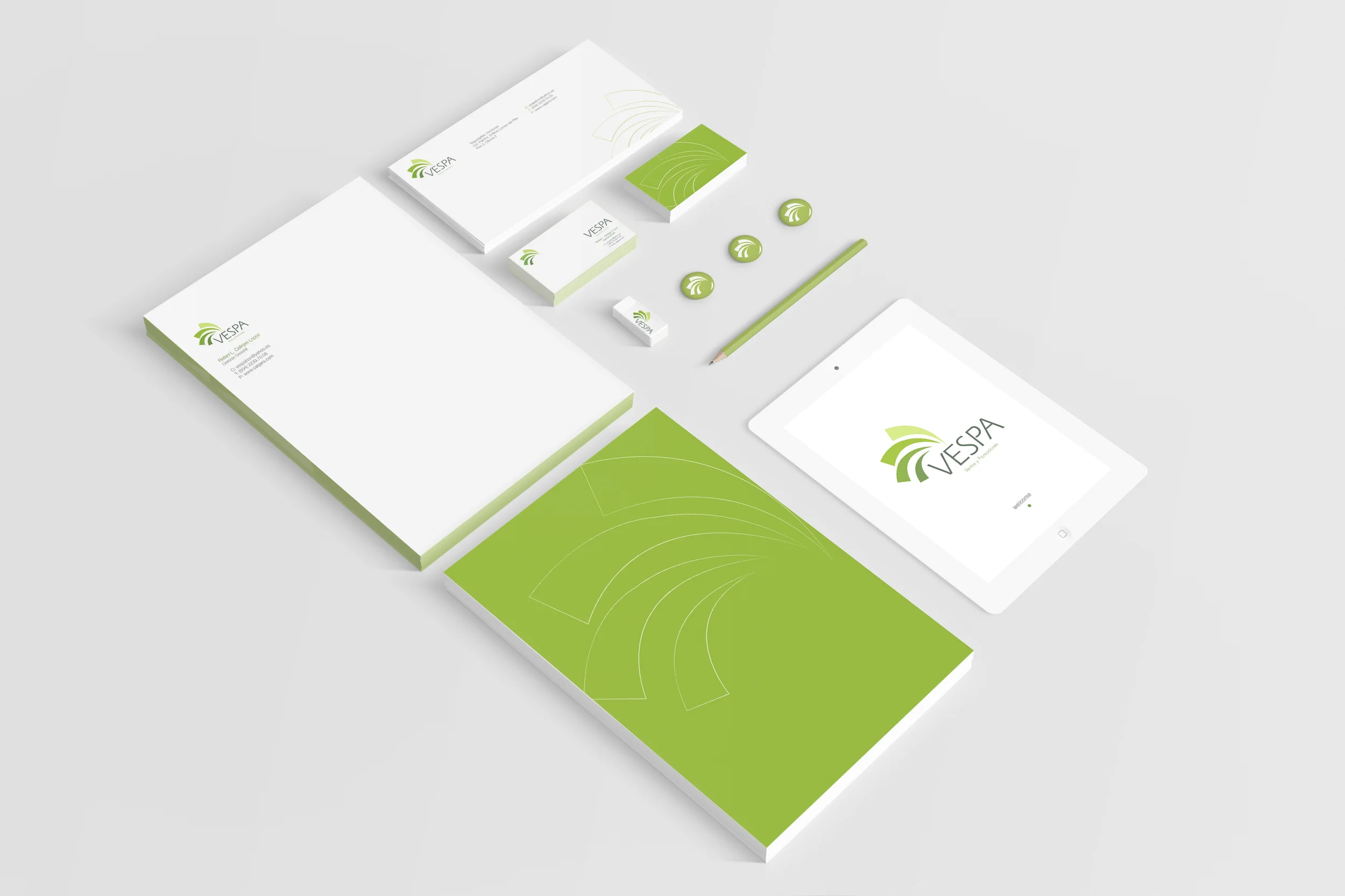 Pieces created: Business cards, letterhead, envelope, and a series of small pieces such as pencils and the start-up for an Ipad.